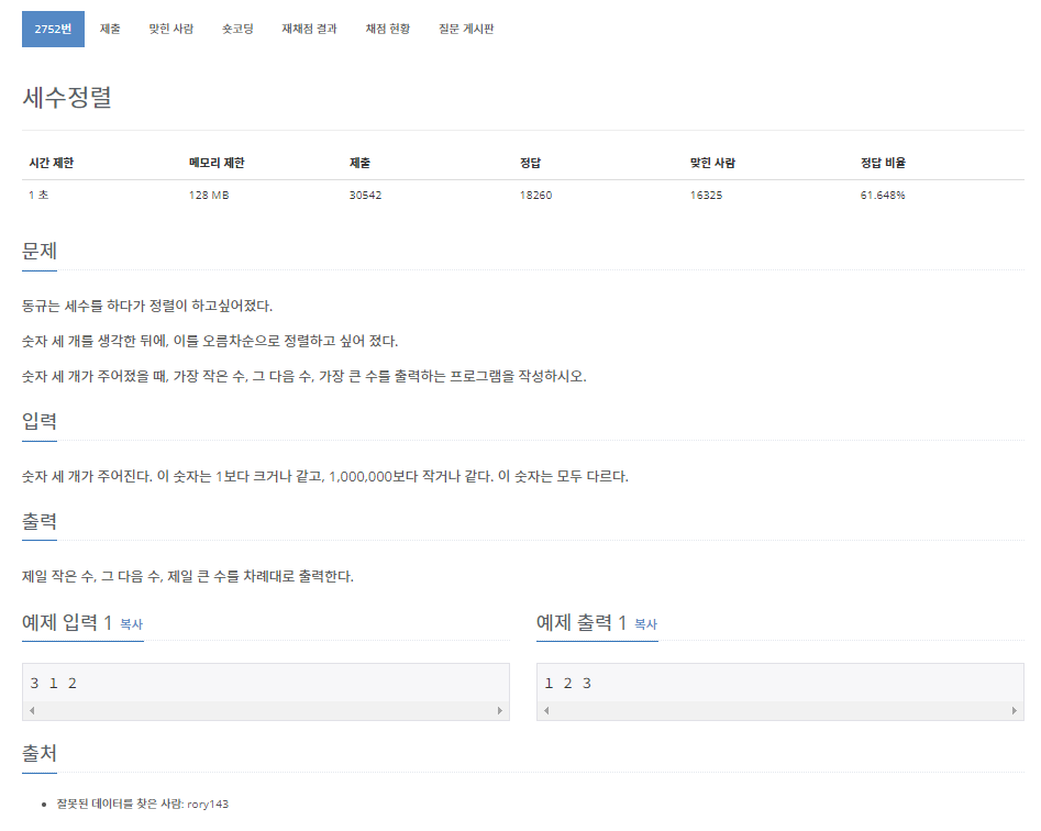 숫자 세 개를 생각한 뒤에, 이를 오름차순으로 정렬하고 싶어 졌다.
