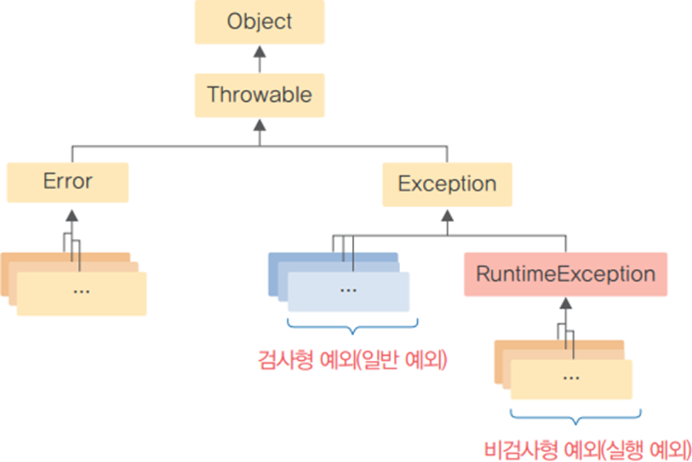 - 오류(error)에 오류(error)와 예외(exception)이 포함됨